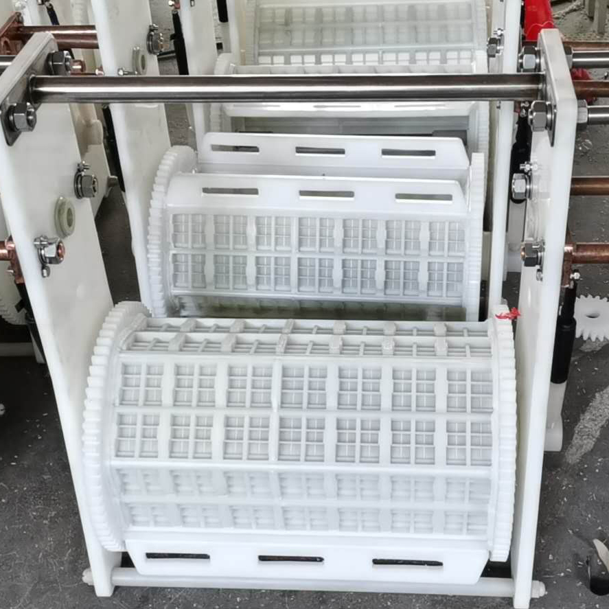2、滚筒槽边外传动形式:适合滚筒装载量大、数量多的情况。 小型滚镀设备,是用进口PP板材,经过剪裁板,铣齿轮,电脑打孔,传动部分组装,和焊接而成.他具有体积小,容易操作,占地面积小,价格低等特点,一直以来被广大电子厂或者需要小量的电镀的客户提供极大的方便.