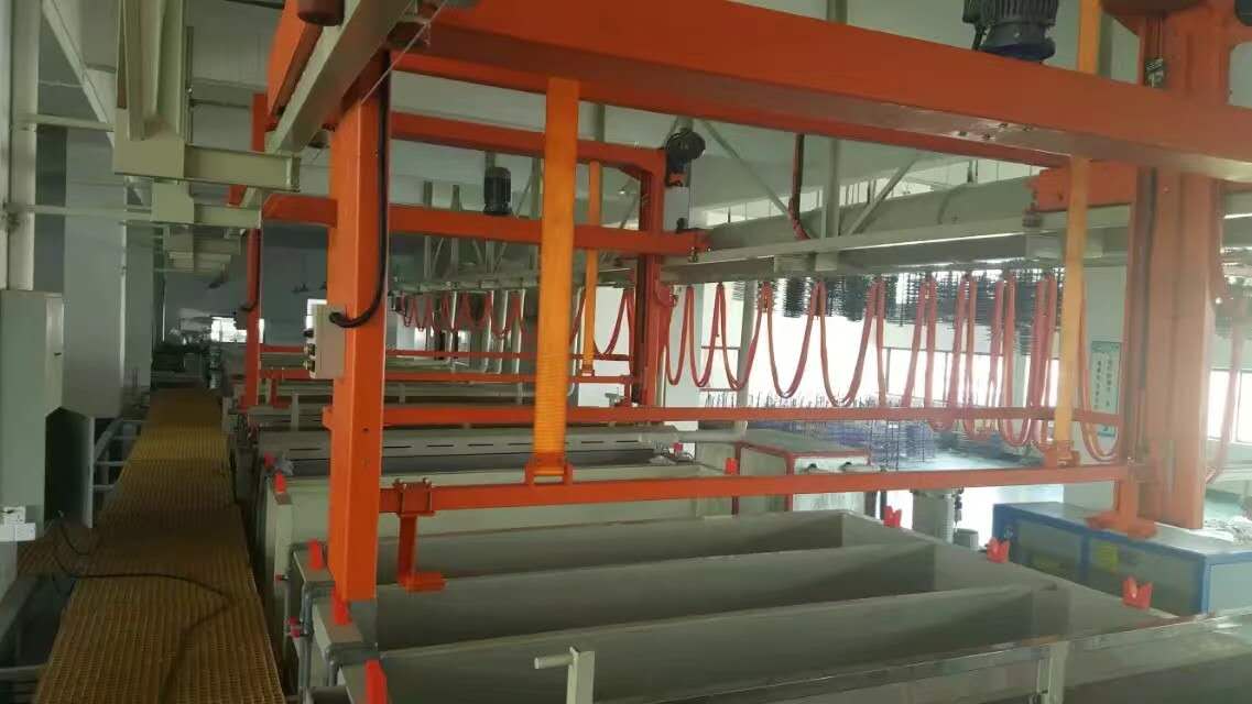 万彩网8458电镀处理过程中所用的设备主要有各类固定槽、滚镀槽、挂具、吊篮等。镀后处理是对零件进行抛光、出光、钝化、着色、干燥、封闭、去氢等工作,龙门式挂镀生产线,根据需要选用其中一种或数种工序使零件符合质量要求。镀后处理常用设备主要有磨、抛光机,各类固定槽。