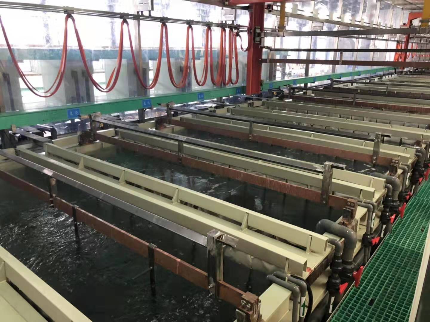 万彩网8458电镀处理过程中所用的设备主要有各类固定槽、滚镀槽、挂具、吊篮等。镀后处理是对零件进行抛光、出光、钝化、着色、干燥、封闭、去氢等工作,龙门式挂镀生产线,根据需要选用其中一种或数种工序使零件符合质量要求。镀后处理常用设备主要有磨、抛光机,各类固定槽。