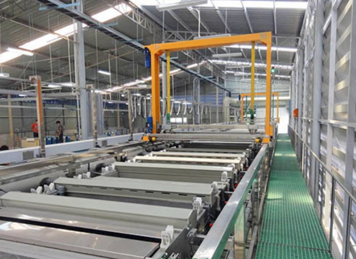 电镀处理过程中所用的设备主要有各类固定槽、滚镀槽、挂具、吊篮等。镀后处理是对零件进行抛光、出光、钝化、着色、干燥、封闭、去氢等工作,龙门式挂镀生产线,根据需要选用其中一种或数种工序使零件符合质量要求。镀后处理常用设备主要有磨、抛光机,各类固定槽。